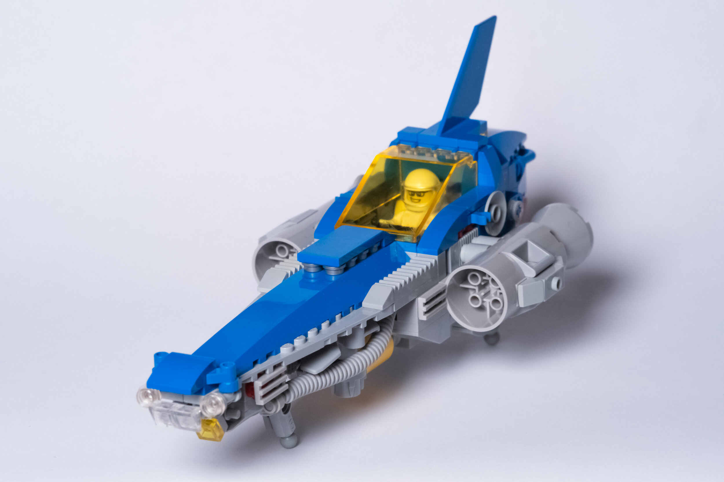 CD: We found the yellow canopy from a toy vendor at a Comic-con and then we got the Blacktron Bounty Hunter Collectible Minifigure, and it was just obvious to me that he needed a vehicle that was a little overkill! The Neo-Blacktron theme is menacing and calculated and I really wanted the Impeder to be those things.