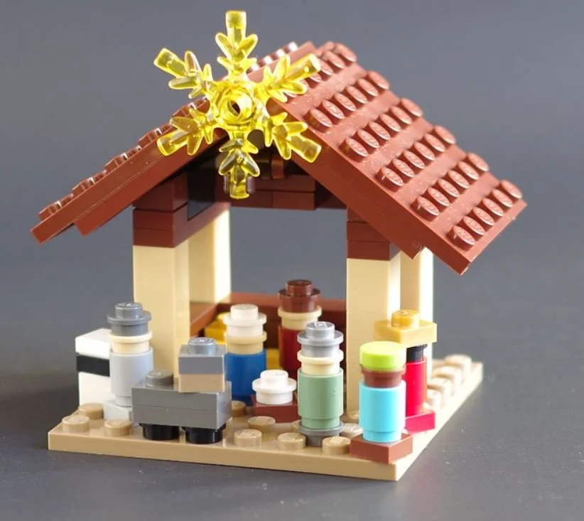 One of the things I love about Nativity scenes is the range of forms they can take. From incredibly detailed and intricate representations to very simple and even quite abstract. Even basic bricks could be simply arranged to make a recognizable Nativity scene! Microscale as we all know can be quite a challenge, so the qualification “simple” refers only to the representation of the figures, not necessarily build techniques.