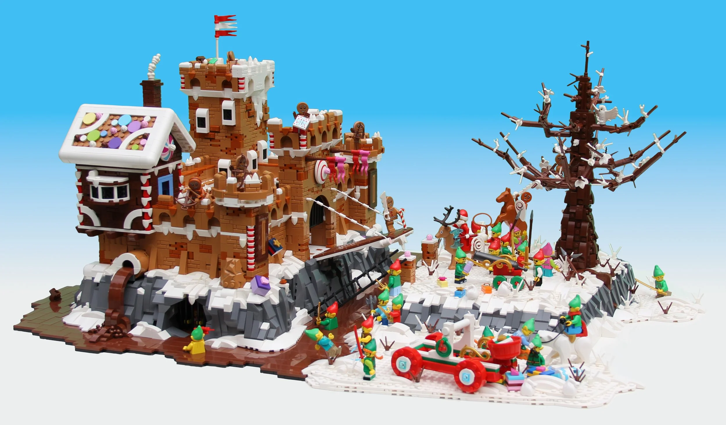 But living like a king isn’t all fun and games. Sometimes the elves rebel, if this depiction of Gingy’s Revenge by Mike Sinclair is to be believed. But it’s to be feared that the chocolate moat will slow them down. (This battle scene built by BrickNerd fan Mike is currently on display at the LEGO House Masterpiece Gallery if you want to see it in person!)