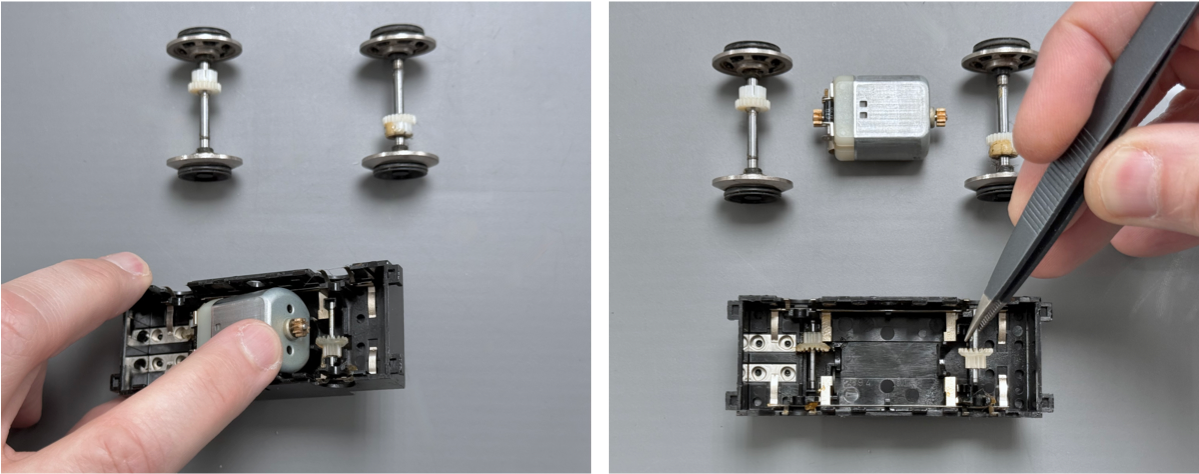 With the motor bogie cover removed, we can now finish disassembly.