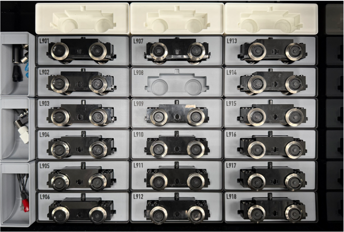 9V Motor test fleet! Each motor is engraved with an identification number on the bottom cover and are used for baseline performance testing and comparison.