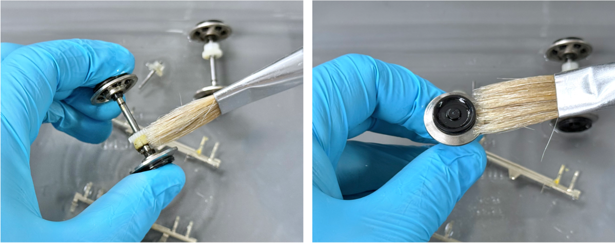 Therefore, I usually pay extra attention to cleaning the wheel flanges and backside wheel hubs with another cleaning pass using cotton buds soaked in IPA. I soak one end of the cotton bud with IPA and use the dry end to wipe over the wetted surface.